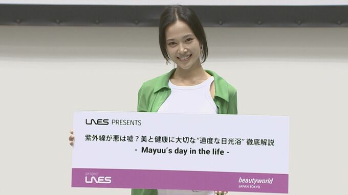 俳優の草刈麻有さんが、東京ビッグサイトで開催中のイベント「ビューティーワールド ジャパン 東京」で、LNES presents“過度な日光浴”徹底解説トークショー」に登壇。