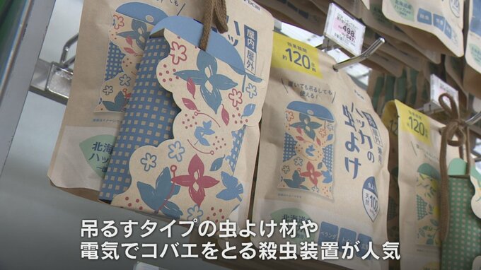 吊るすだけの手軽さから、ベランダなどに置く虫除け材や、電気でコバエを集め採る装置が特に売上好調ということです。