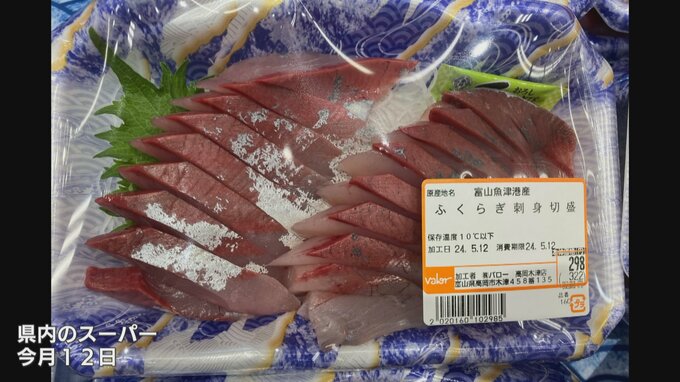 嘉藤奈緒子アナウンサー:「(スーパーの)鮮魚コーナーに行ってみますと、ぎっしりとふくらぎの刺身が並んでいます。ただ、そこまでかなり安くなっているというわけではないですね」