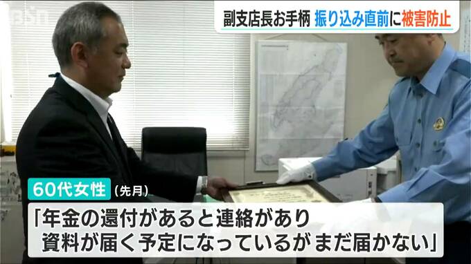 還付金詐欺の被害を未然に防いだ第四北越銀行の職員に15日、警察から感謝状が贈られました。