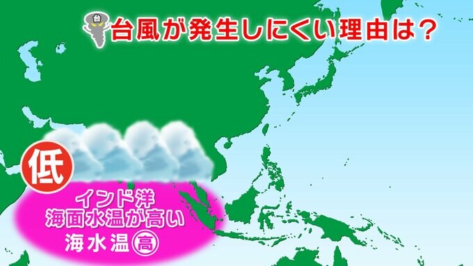 インド洋熱帯域で海水温が高いことで、台風が発生しにくくなるのはなぜでしょうか?