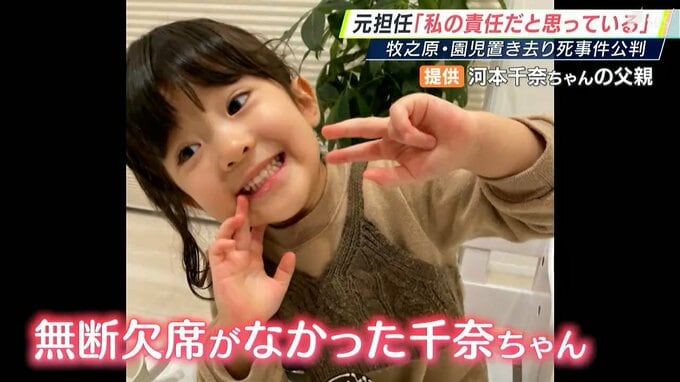 当時バスを運転していた元理事長は、園児をバスから降ろす際、座席の確認を怠って千奈ちゃんを車内に置き去りにしたなどとして、また、元クラス担任の女は、千奈ちゃんが登園していないと気づいたにもかかわらず「欠席」と信じ込み確認しなかったとして、ともに業務上過失致死の罪で在宅起訴されました。