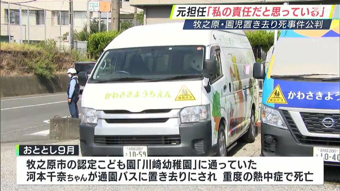 2022年9月、静岡県牧之原市の認定こども園で当時3歳の河本千奈ちゃんが通園バスに置き去りにされ、重度の熱中症で亡くなった事件。業務上過失致死の罪に問われている元理事長(74)と元クラス担任(48)の2回目の裁判が静岡地裁で開かれました。5月15日は、元クラス担任への質問が行われ、初公判に続き法廷に立った千奈ちゃんの父親からの問いに「私の責任だと思っています」と答えました。