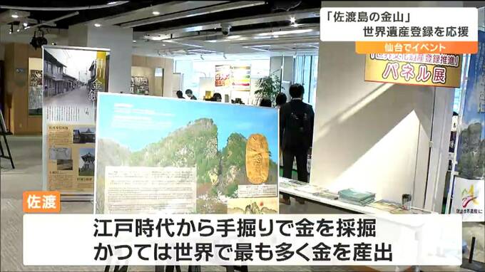 仙台市青葉区の東北電力グリーンプラザで始まったイベントは、世界文化遺産の登録を目指す「佐渡島の金山」を盛り上げようというものです。