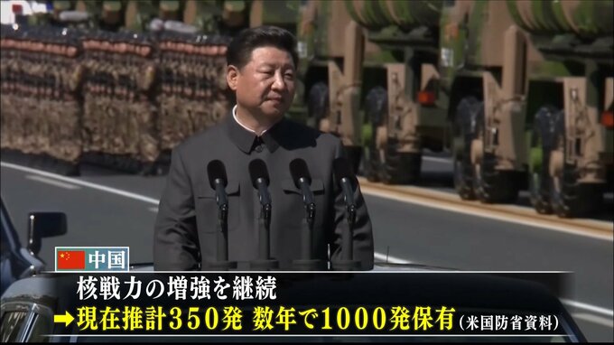 また中国は、核戦力増強を続けており、数年で1000発の核弾頭を保有すると分析されています。さらに…