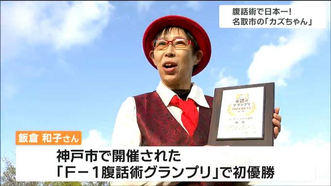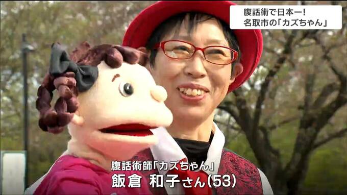 人形のしーちゃんはまるで生きているかのよう。一方、飯倉さんの口元はほとんど動きません。飯倉さんは4月、神戸市で行われた日本一のアマチュア腹話術師を決める大会「F-1 腹話術グランプリ」で初優勝しました。