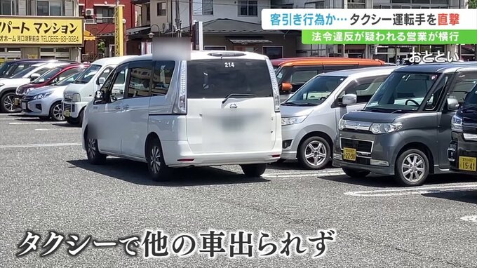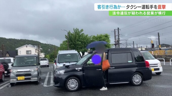 別の会社の黒いタクシーが同じように駐車場の真ん中に停車し、客のような人物が乗り込む姿もありました。