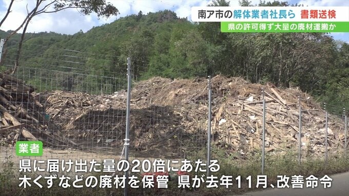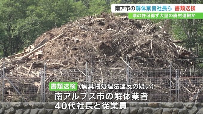 山梨県の許可を得ず大量の廃材を運搬していたとして警察は南アルプス市の会社社長らを書類送検しました。