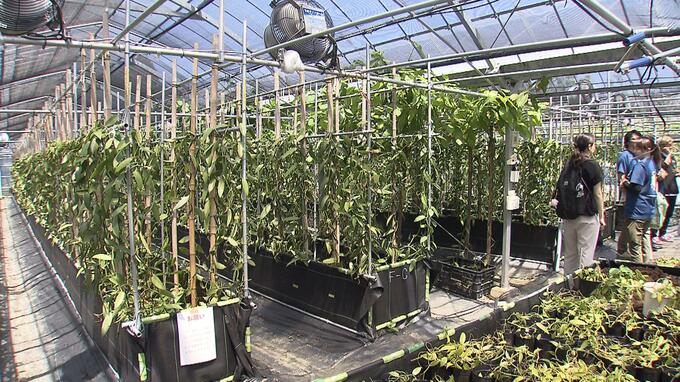 北中城村にあるバニラ農園では16日、バニラを使ったスイーツの試食会が開かれ、北中城村長や関係者らが集まりました。