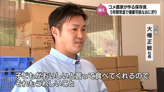 近年、米の消費量も減り農家も高齢化する中、大幡さんは、このおにぎりが災害時に役立つだけではなく、コメ農家を盛り上げるきっかけになればと意気込んでいます。