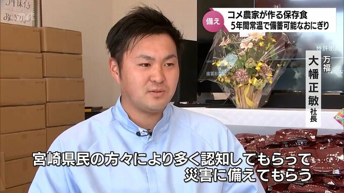 「農家さんから自分の米を使っているというのをすごく喜ばれるし、このおにぎりに対して、いろんな届いた方に被災のときに食べてもらう、宮崎県民の方々により多く認知してもらって、災害に備えてもらう。それができれば、自分もこの備蓄おにぎりをやる甲斐があるなと思います」