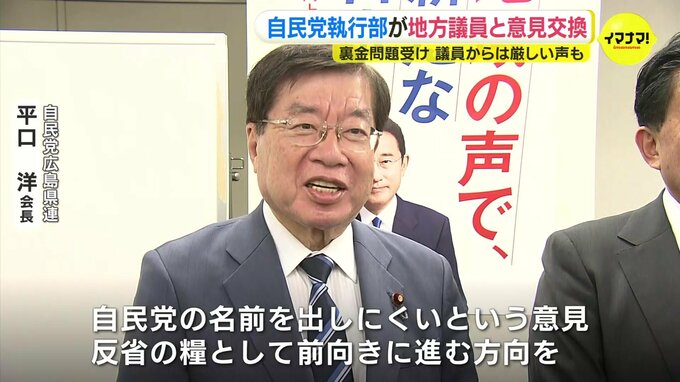 自民党の裏金事件を受けて、党本部の執行部が全国を回って地元議員などと意見を交わす「車座対話」が広島市で開かれました。
