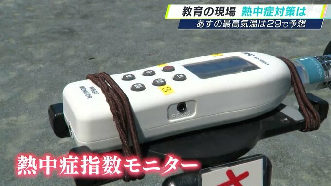 静岡市内の小学校では、運動会に向けて練習が始まっています。練習するのは、日差しが直にあたる運動場。授業の前、教員が置いたのは、熱中症指数モニターです。