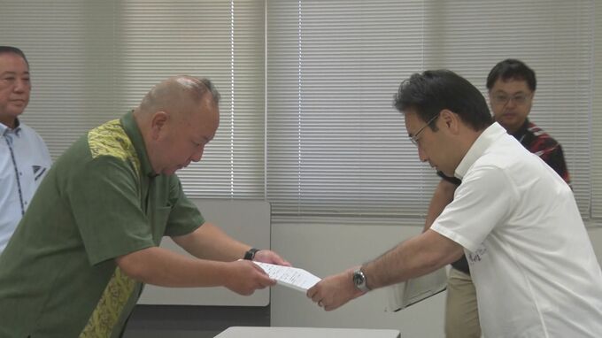 米軍嘉手納基地に配備が予定されている大型無人偵察機について沖縄県議会の自公会派が沖縄防衛局に対して配備を再検討するよう要請しました。