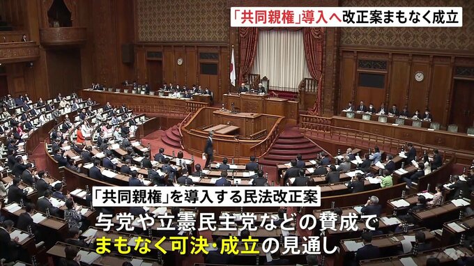 国会では、離婚後の子どもの親権を父親と母親の双方に認める「共同親権」の導入を柱とした民法改正案が、まもなく成立する見通しです。「共同親権」を導入する改正案では、離婚後の協議で親権が決まらない場合、「…