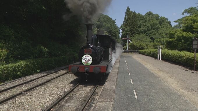 明治村の敷地内を走る蒸気機関車には、19日まで5000万人到達を記念したヘッドマークが取り付けられるということです。