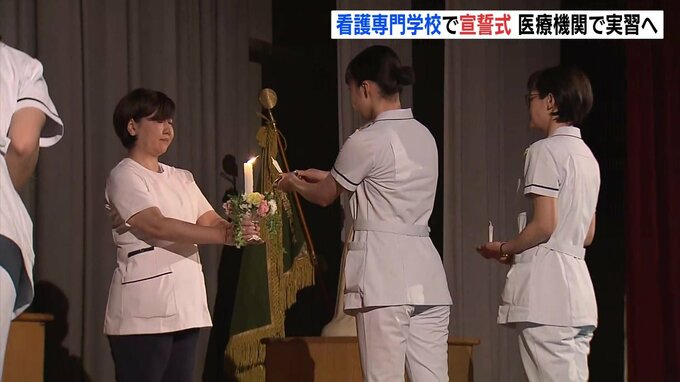 看護師を目指す学生たちが、本格的な実習を前に決意を新たにする「宣誓式」が広島市で行われました。