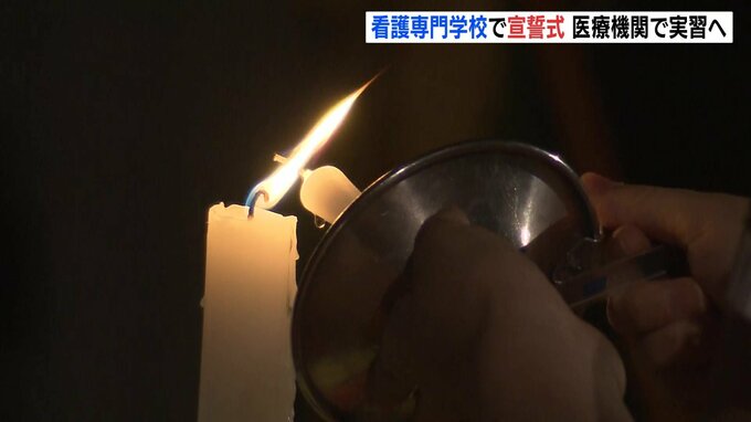 宣誓式に臨んだのは、広島市立看護専門学校の2年生76人です。式では看護学生たちがナイチンゲール像から分けられた「看護の精神」を意味するろうそくの火を灯し、誓いの言葉を述べました。