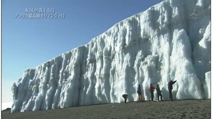 赤道下の熱帯でありながら、キリマンジャロの頂には氷河があります。高山の万年雪が時と共に分厚い氷の固まりになったものが氷河。19世紀に、ヨーロッパ人として初めてキリマンジャロ山頂の氷河と雪を目撃したのはドイツの宣教師です。彼はその発見を学会で報告したのですが、「赤道下の熱帯にそんな山があるはずはない」と誰も信じなかったといいます。ちなみにこの第一回のキリマンジャロの放送時、ナレーターは初代の緒形直人さんでした。