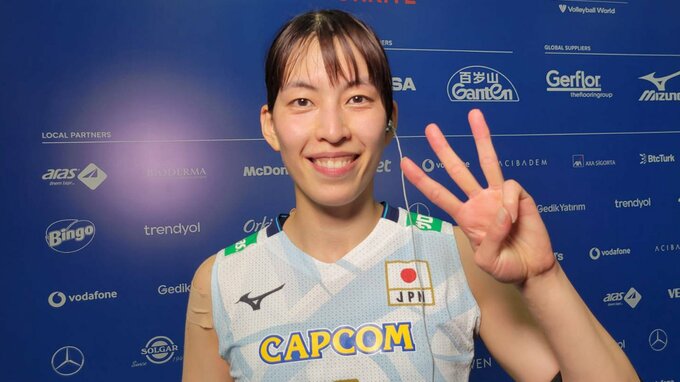 パリ五輪の切符を懸けた最後の戦い、ネーションズリーグで女子日本代表(世界ランク8位)がドイツ(同12位)をストレート(25-21、25‐15、25‐22)で下し開幕から3連勝を飾った。試合後には司令塔の岩崎こよみ(35)、エース・古賀紗理那(27)、石川真佑(24)、宮部藍梨(25)が取材に応じた。次戦、日本はポーランド(同6位)と19日に対戦する。
