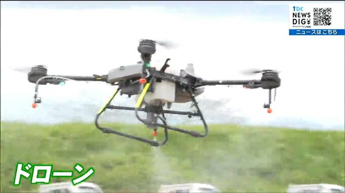 また、無人航空機ドローンを使い農薬を散布する模擬飛行も行われ、参加者は高い関心をもった様子で見ていました。