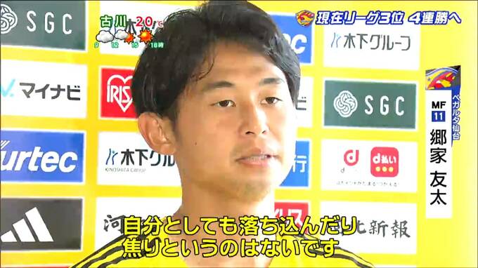 サッカー・明治安田J2リーグベガルタ仙台は、19日、アウェーで栃木SCと対戦します。現在リーグ3位につけるベガルタ。次節も堅い守備を発揮し勝利を誓います。