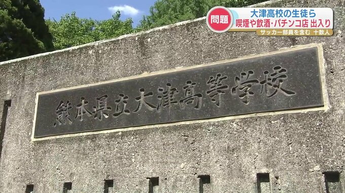 熊本県立大津高等学校で、サッカー部員を含む複数の生徒が喫煙や飲酒などをしていたことが明らかになりました。大津高校によりますと、5月1日、学校に対し「生徒が飲酒や喫煙をし、パチンコ店に出入りしているので…