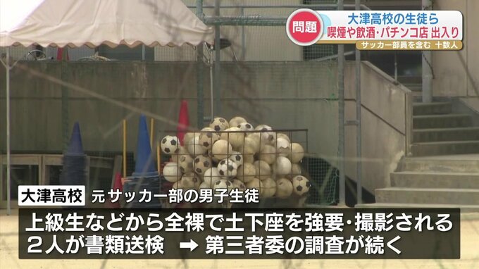 大津高校では、サッカー部に所属していた男子生徒が上級生などから全裸で土下座を強要されてその様子を撮影されていた問題で、当時の上級生2人が書類送検されていて、第三者委員会による調査が現在も続いています。