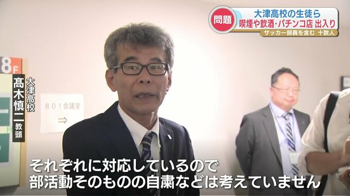 大津高校 髙木慎二 教頭「サッカー部の生徒が、不適切行動に混ざっていたという捉え方でそれぞれに対応しているので、部活動そのものの自粛などについては考えていません。試合も出るというかたち」
