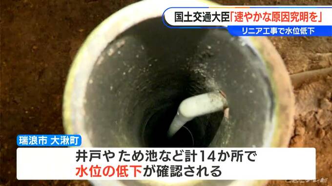 リニア中央新幹線のトンネル工事が進む岐阜県瑞浪市で、井戸などの水位が低下している問題で、国土交通大臣が速やかな原因究明を要求です。
