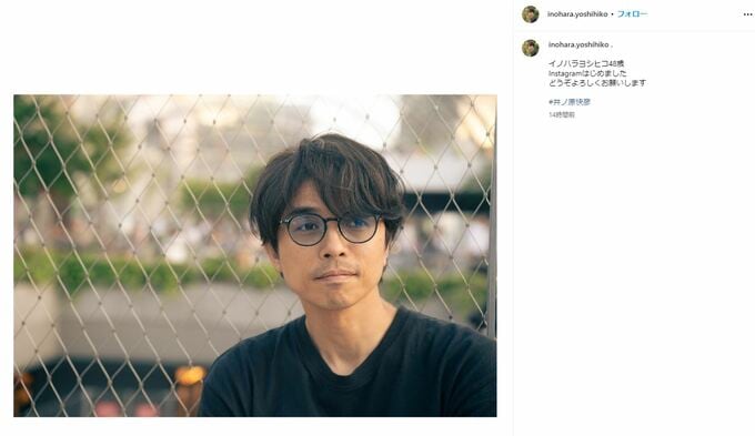井ノ原さんは「イノハラヨシヒコ48歳 Instagramはじめました」と簡潔に報告。屋外で黒のTシャツと淡い色のサングラスをかけた、穏やかな表情の自身の写真を投稿し、「どうぞよろしくお願いします」とあいさつ。ハッシュタグで「#井ノ原快彦」と追加しています。