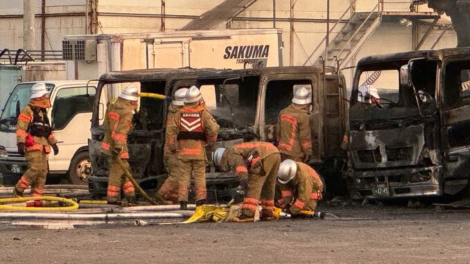 消防車8台が消火にあたり、約2時間後に火は消し止められました。この火事で、中型トラック3台が全焼し、ほかの中型トラック1台と普通車2台も焼損。けが人はいないということです。