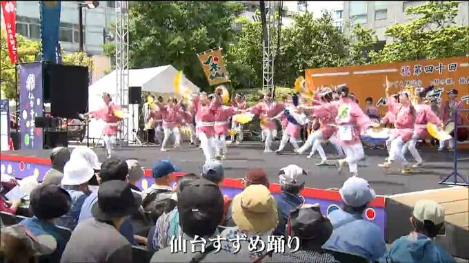 仙台・青葉まつり2日目の本まつりを迎えた19日、仙台市青葉区の勾当台公園市民広場では、揃いの法被に身を包んだ踊り手たちが、仙台すずめ踊りを披露しました。