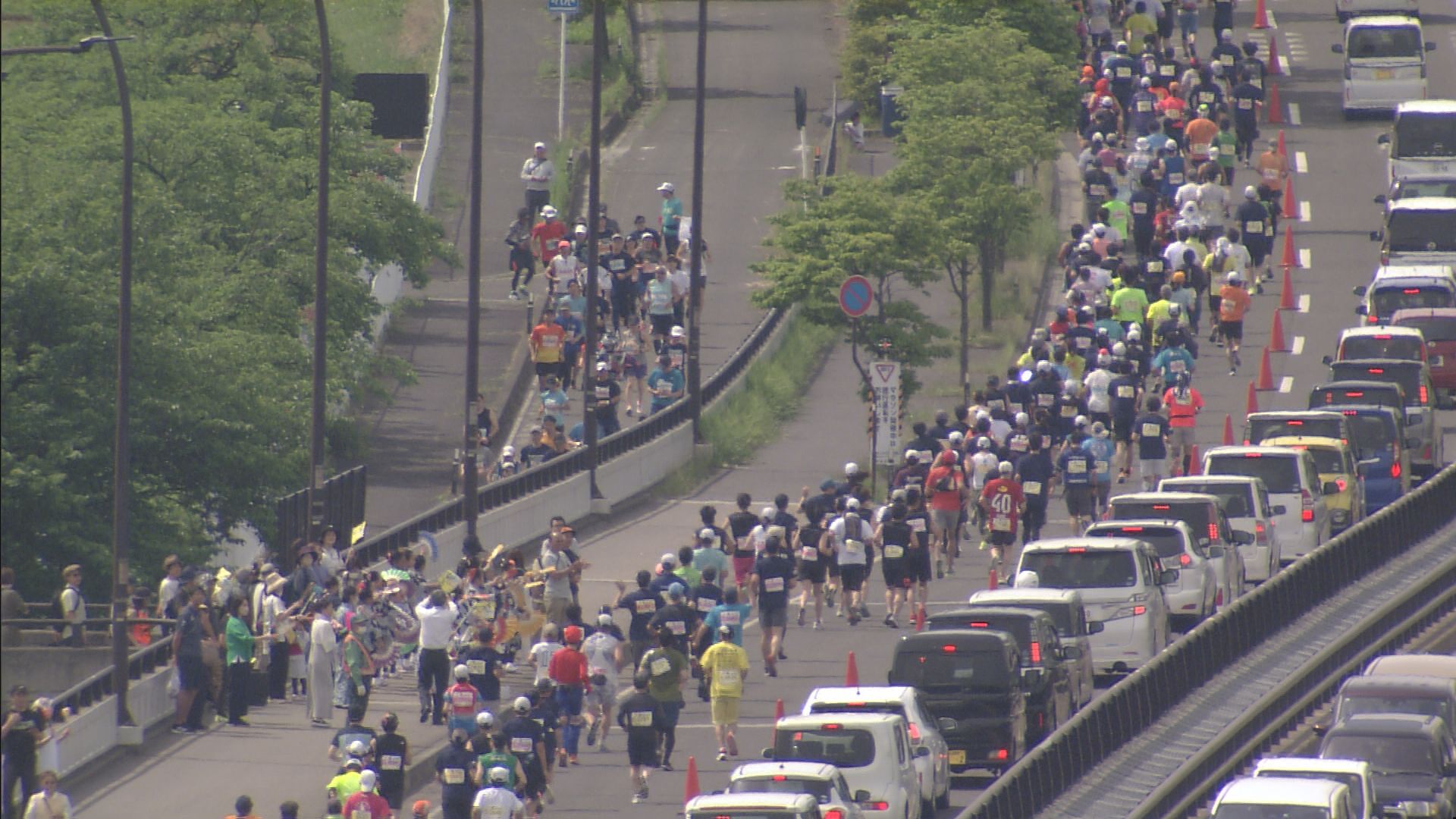 ランナーたちは思い思いのぺースで新緑の福島路を駆け抜けていました。