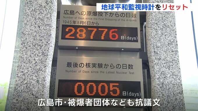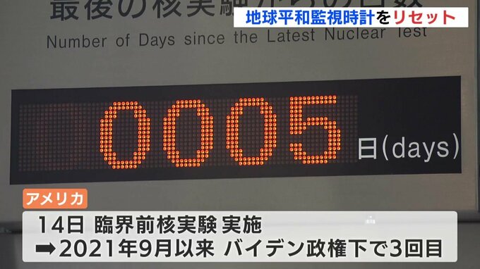 アメリカが臨界前核実験を行ったことを受け、原爆資料館(広島・中区)にある「地球平和監視時計」がリセットされました。