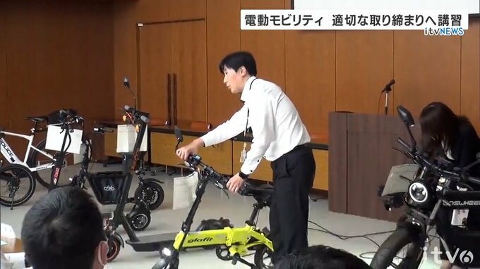 電動キックボードなど新たな電動モビリティが普及する中、愛媛県警では取り締まりを担う交通部門の警察幹部を対象に車両の種類を見分ける講習が行われました。 講習は交通管理官・課長会議の中で行われ、愛…