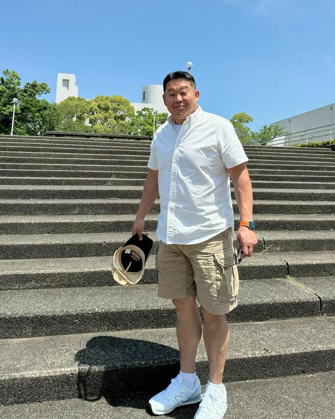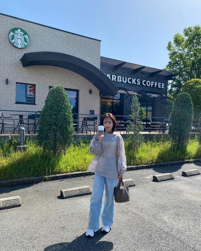 続けて「出番が早めに終わるので、コーヒーを持って気軽な感じで」と、コーヒーを片手に駐車場でポーズをとる自身の写真とともに投稿。