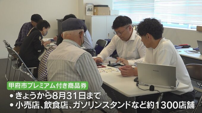 5000円で最大7000円分の買い物ができる甲府市のプレミアム付き商品券の利用が20日、始まりました。