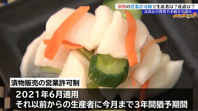 漬物販売の営業許可制は新規参入の個人や団体を対象に3年前の2021年6月から始まっていますが、それ以前から漬物を生産していた人たちには猶予期間が設けられていました。