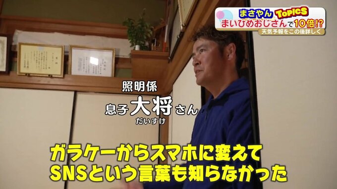息子・大将(だいすけ)さん「去年の8月までガラケーですから。ガラケーからスマホに変えてSNSという言葉も知らなかった。最初『TikTok(ティックトック)』も『てぃっぷとっく』って言ってて、ちゃんと言えなかった」