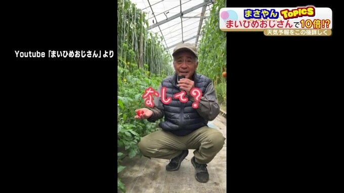 公明さん「こんなにもトマトジュースが美味しいって言ってもらえるの、なして(=なぜ)?僕が作ったトマトジュースは糖度が11度以上なの、なして?」※YouTube「まいひめおじさん」より