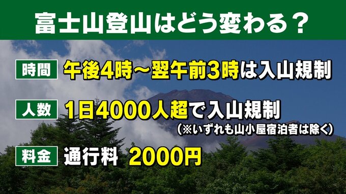 登山者の増加や弾丸登山解消のため、登山者の規制や2000円の通行料徴収に踏み切った山梨県が20日にスタートさせたのは…