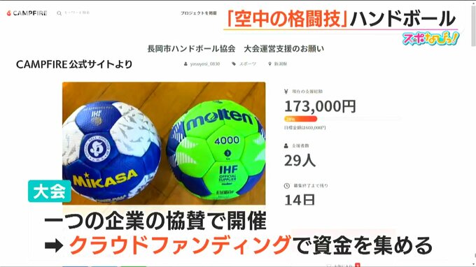 高校時代からハンドボールを続け、現在は高校生を中心にハンドボールの指導を行っている長岡市ハンドボール協会の丸山泰佳さんは体育館の確保など「何をするにもお金が必要…」と話します。