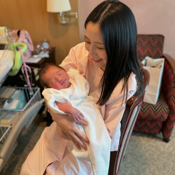 続けて、「第一子の時と同じく計画無痛(和痛)分娩にしまして、お産自体は非常にスムーズにはいったもののやはり無痛といえど、今回は促進剤投与してからたった数分しか感じることがなかった陣痛なのに地獄の痛みで汗と涙が出ました…笑」と、出産時を振り返りました。
