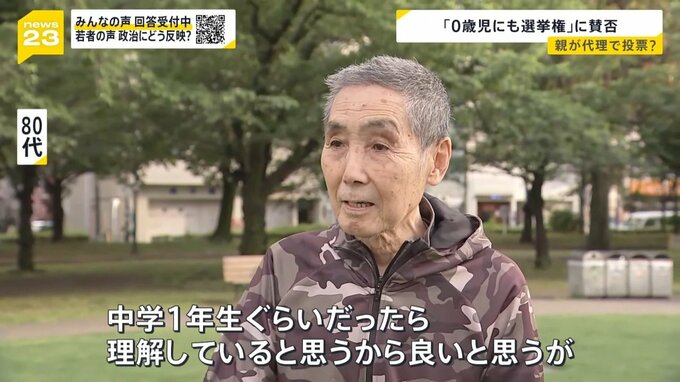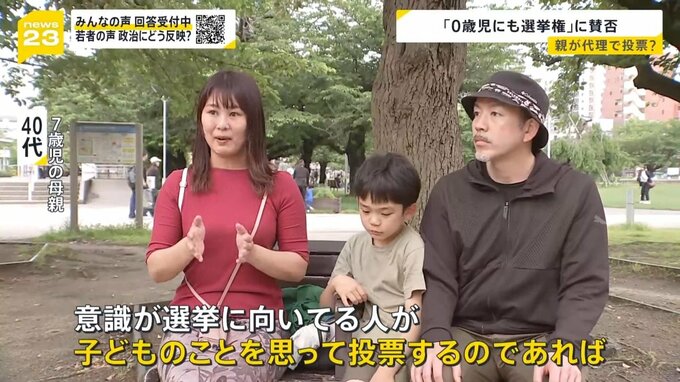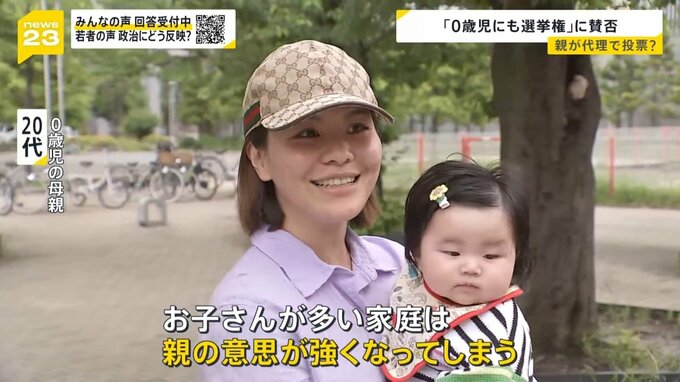 「中学1年生ぐらいだったら理解していると思うから良いと思うが、0歳児からはあまり良いとは思わない。今の若い子は投票行かない。うちの息子もそうだけど(投票に)行けと言っても『行かない』と」