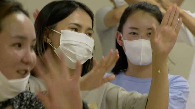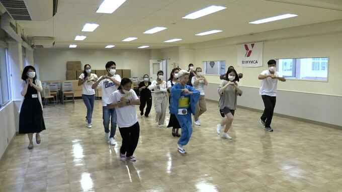 動きは少しぎこちないものの約30人が、おそろいのTシャツ姿で懸命に踊っていました。