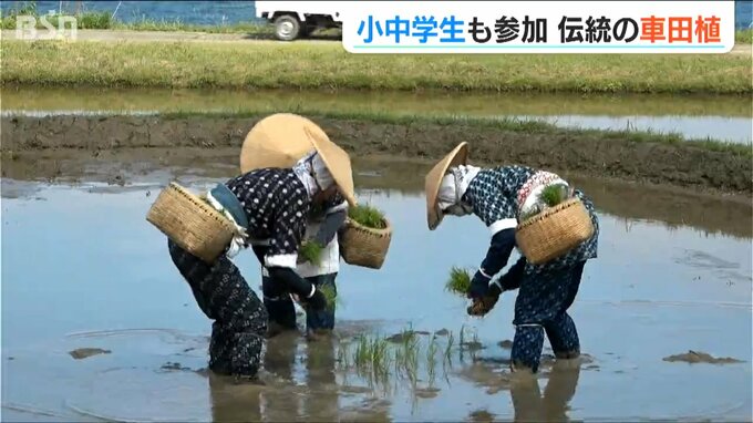 新潟県 佐渡市では21日、国の重要無形民俗文化財に指定されている伝統行事『車田植(くるまだうえ)』が行われました。『早乙女』と呼ばれる3人の女性が田んぼの中央から後ずさりする形で「らせん状」に苗を植えて…