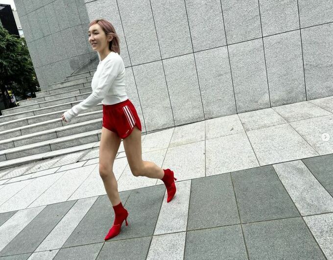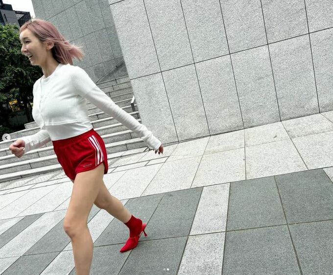 加護さんは長袖白のタイトめなトップスに、華奢な赤いニットヒールブーツを履きこなし、ボトムはこれも白い縦ストライプが脇に入った深い切れ込みの真っ赤なショートパンツという目を惹くコーディネートで、はつらつと駆ける姿を写真2枚に亘って投稿。