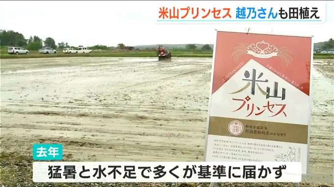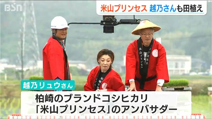 新潟県柏崎市のブランド米「米山プリンセス」の認証を目指す田んぼで21日、田植えが行われました。新潟市出身で元宝塚歌劇団の越乃リュウさんも挑戦しました。