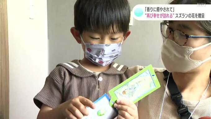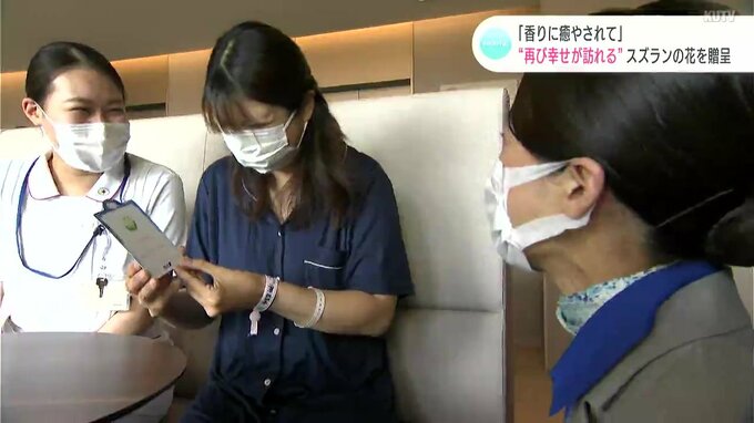 しおりは入院患者にも届けられ、受け取った人たちは香りを嗅いだり、しおりに書かれたメッセージを読んだりしていました。こちらの女性は、20日、出産したばかり。優しいスズランの香りに癒やされたようです。